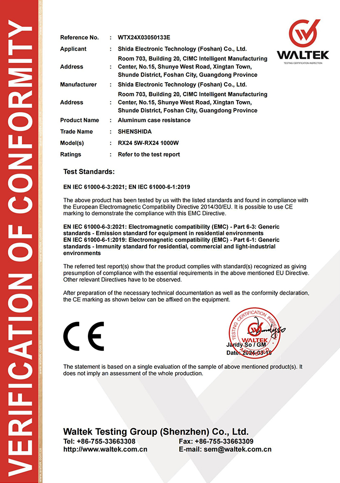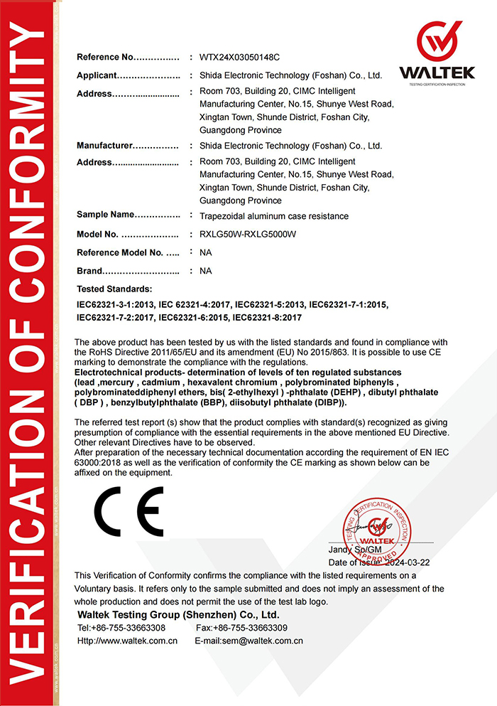 Shida resistors have passed multiple national level certifications worldwide